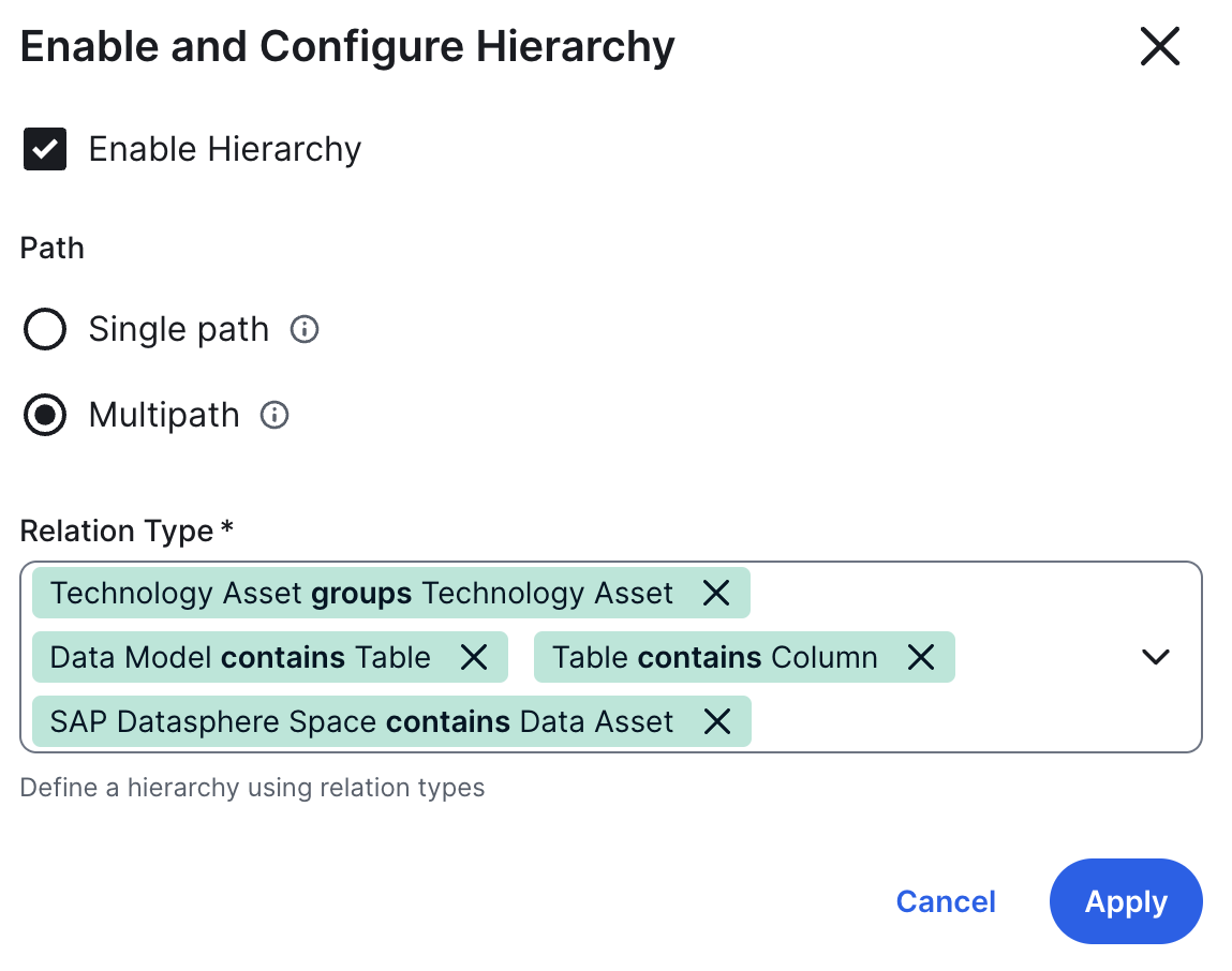 The Configure Hierarchy dialog box appears. - Select Enable Hierarchy.