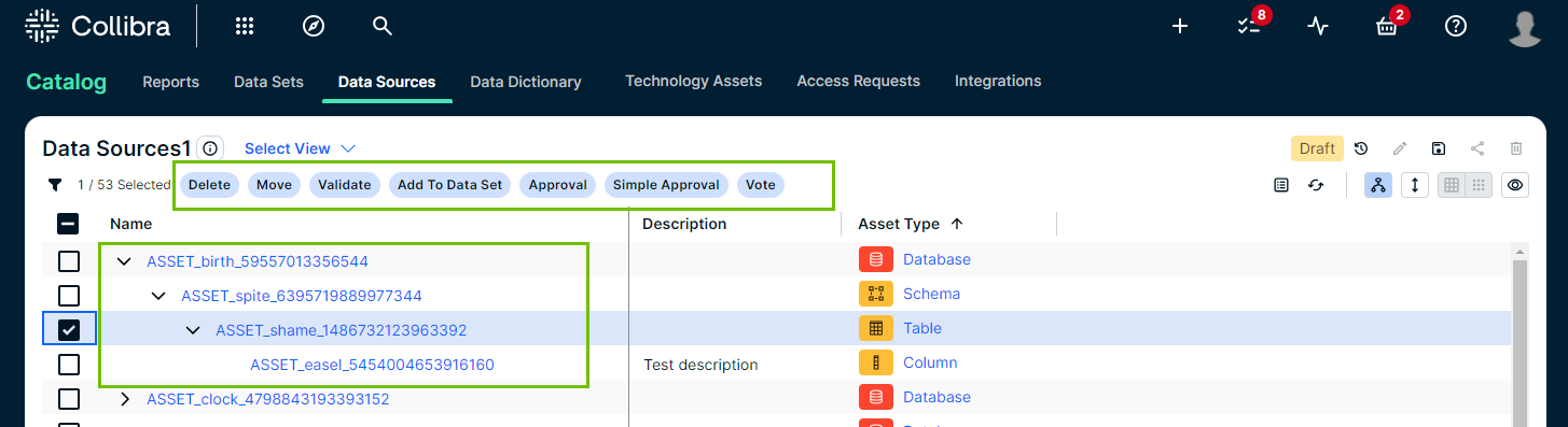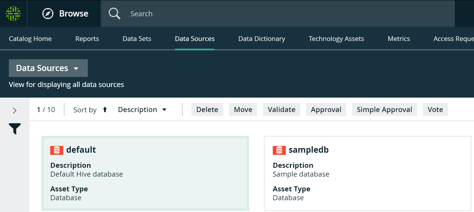 The Data Sources page is page that shows the asset types that are created by Database and S3 registrations. It’s a combination of Data and Technology asset types.