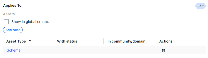 - In Asset type, select Schema.
