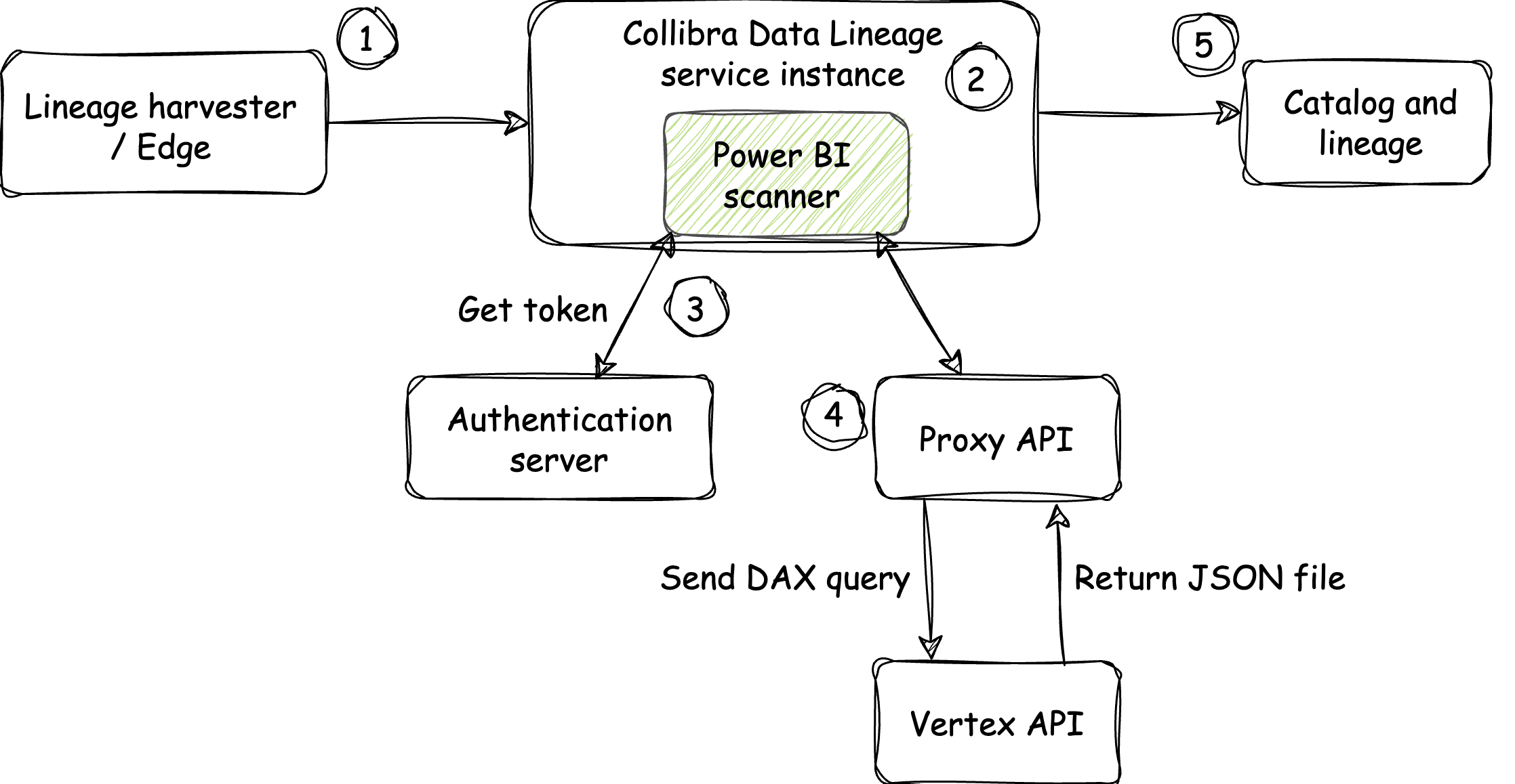- During Power BI integration, the lineage harvester or Edge sends a request to the Collibra Data Lineage service instance, to process the Power BI metadata.