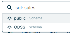 After typing the ., Data Marketplace shows the available schemas as search suggestions.