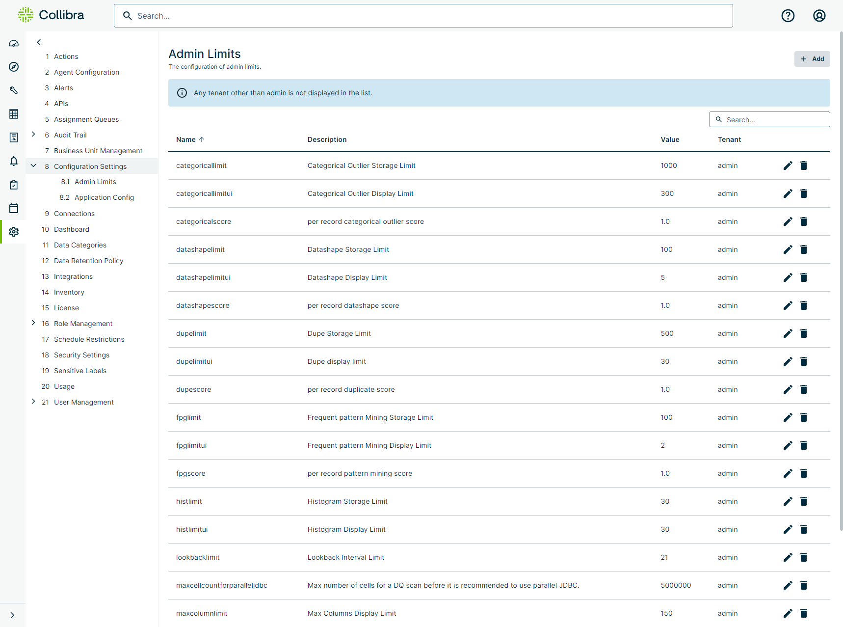 Admin Limits define the maximum values of parameters passed during the execution of a DQ Job.