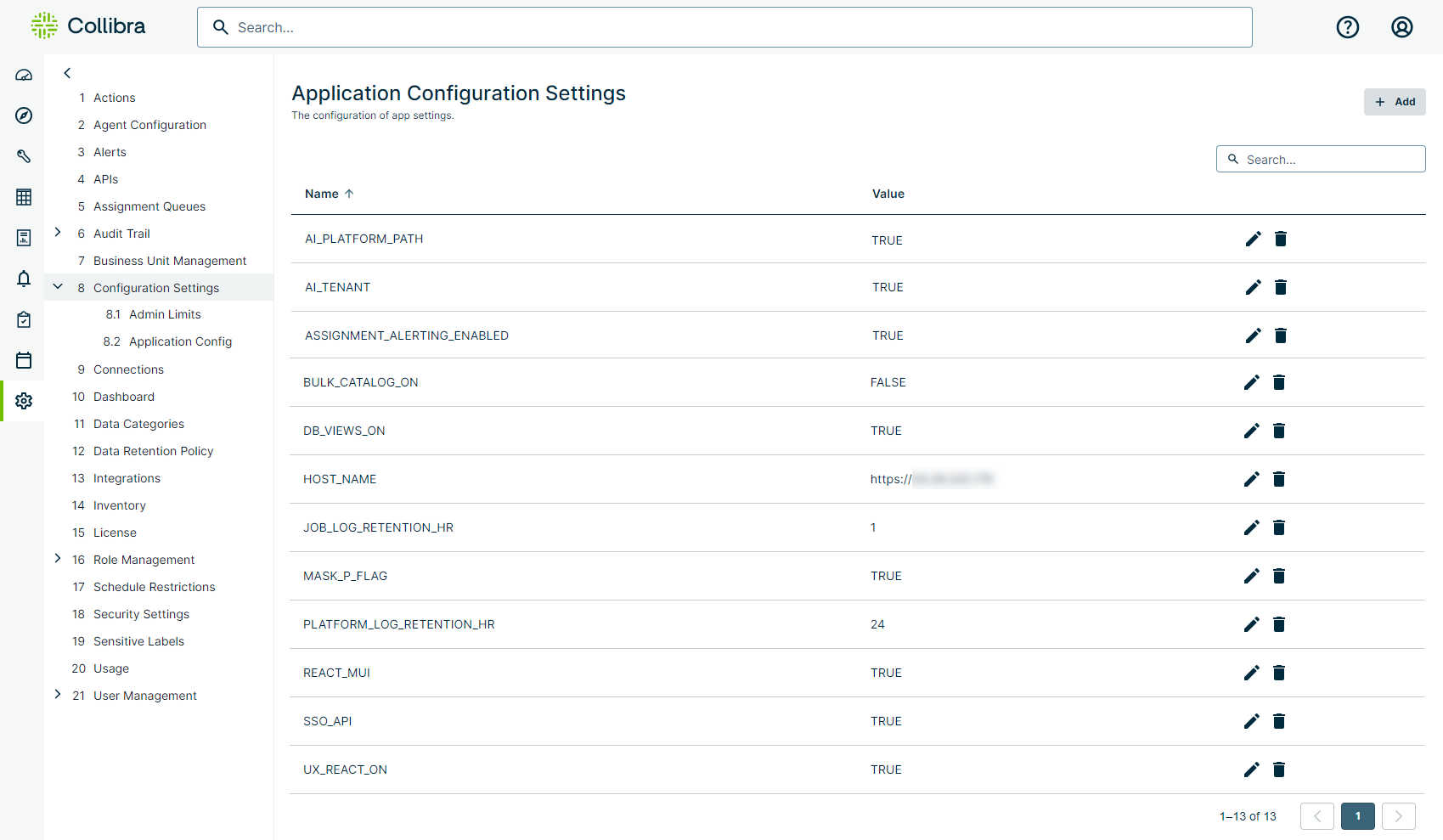 Application Configuration Settings allows admin users to toggle various platform controls on and off. Admins can also add custom application configuration settings from this page.