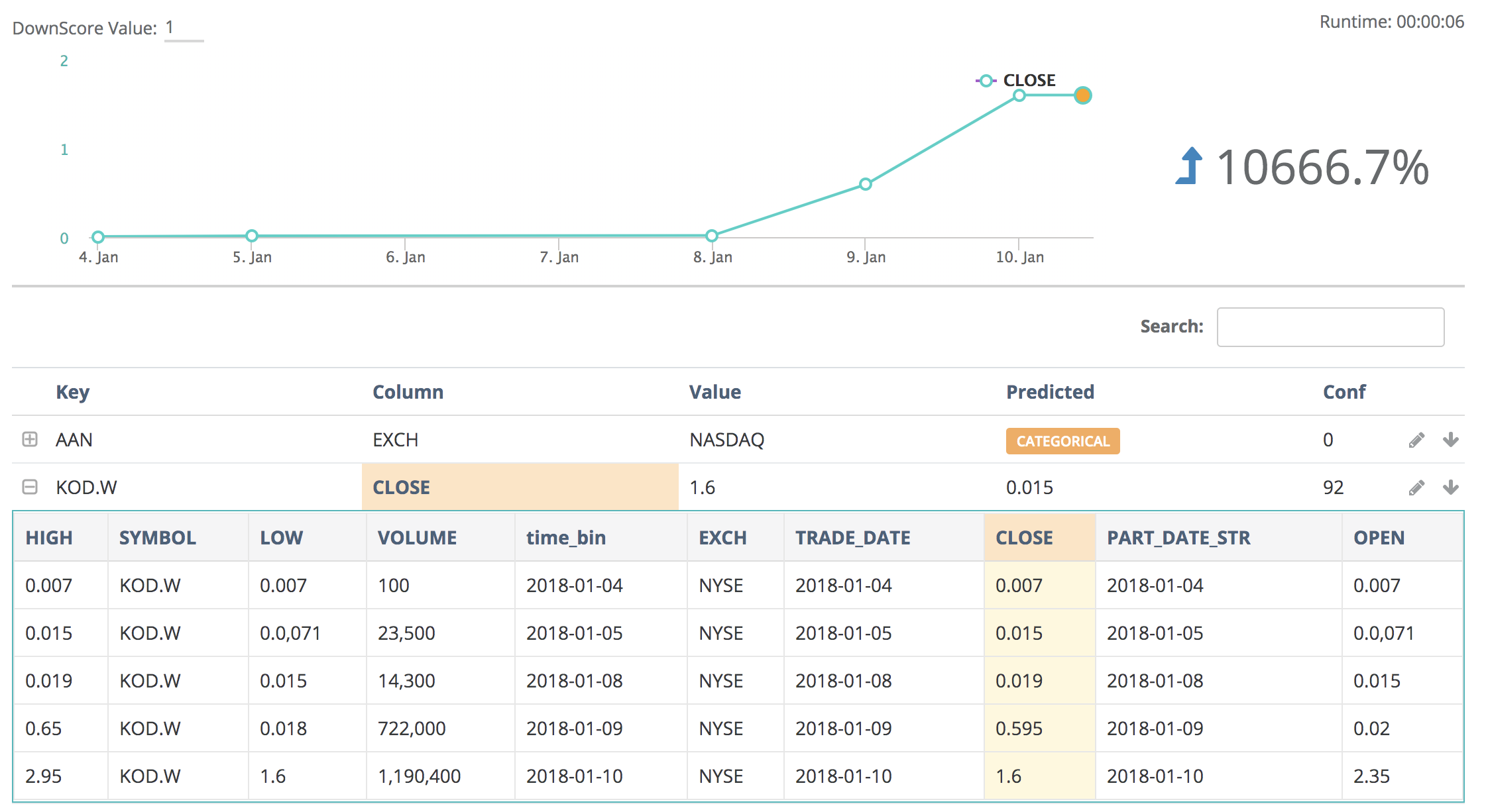 Kodak Coin! In 2018 Kodak announced themselves as Kodak Coin and witnessed a steep change in their stock price. Collibra DQ automatically captured this event and provided the ability to drill into the item.