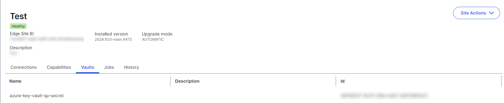 Integrate your HashiCorp Vault with your Edge site connections by adding a vault to your Edge site.