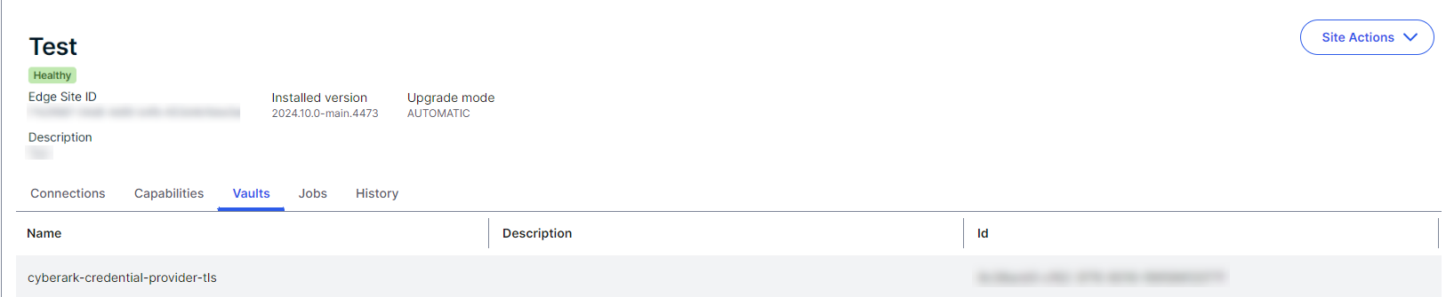 Integrate your CyberArk Vault with your Edge site connections by adding a vault to your Edge site.