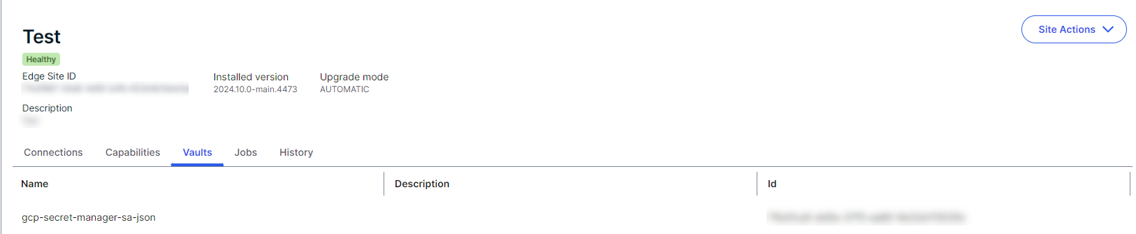 Integrate your Google Secret Manager with your Edge site connections by adding a vault to your Edge site.