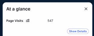 - In the "At a glance" sidebar, you can now see the total page visits for an asset. Click "Show Details" to dive deeper into the analytics. You can check for trends over time and see who frequently visits the asset. (idea #DCC-I-117)