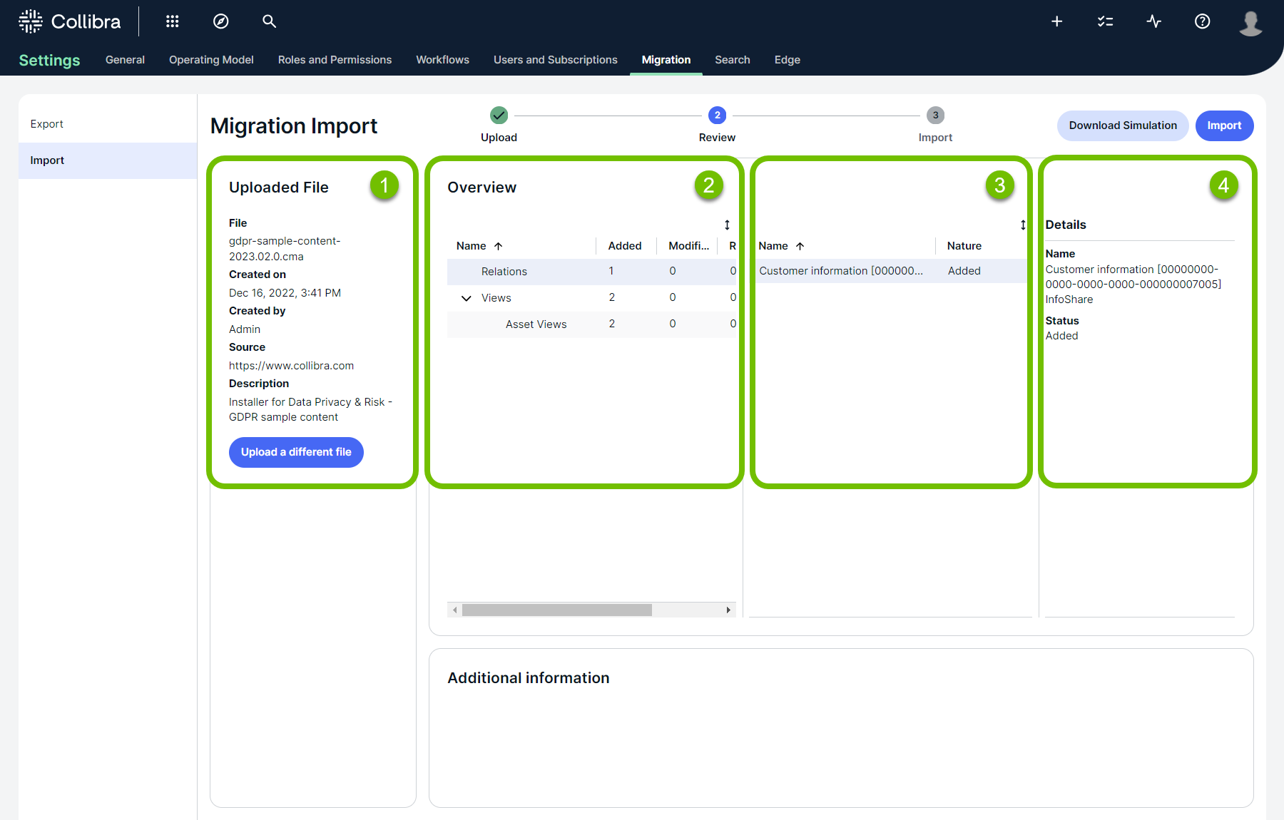 Using the Migration feature, you can import an archive file containing model objects of a Collibra Data Intelligence Platform environment.
