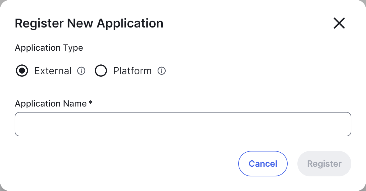 Field Description Application Type External: For applications that are developed by you to access and interact with the Collibra public APIs, facilitating integration with our product suite.