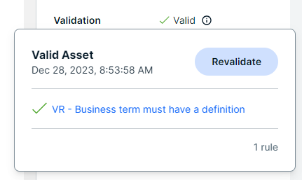 After validating or revalidating assets, you can view the result and make changes where necessary.