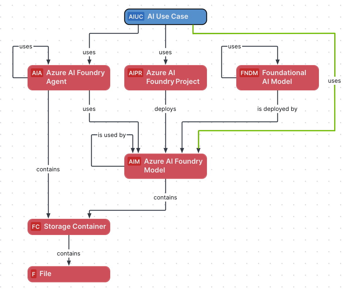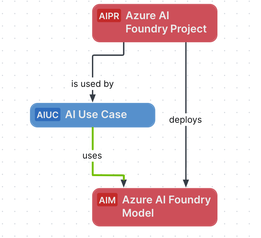 For all Azure AI Foundry Model assets that are related to the Azure AI Foundry Project, relations are automatically created between those Azure AI Foundry Model assets and your AI Use Case.