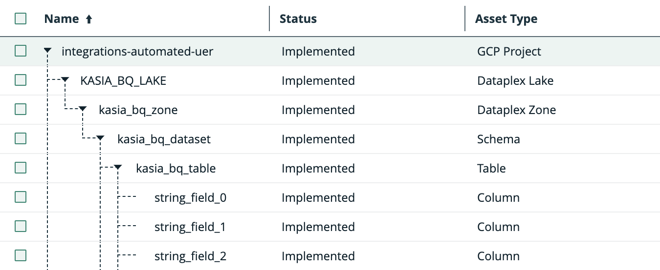 The Google Dataplex ingestion is based on Dataplex and results in assets that represent the projects, lakes, zones, tables, and columns.