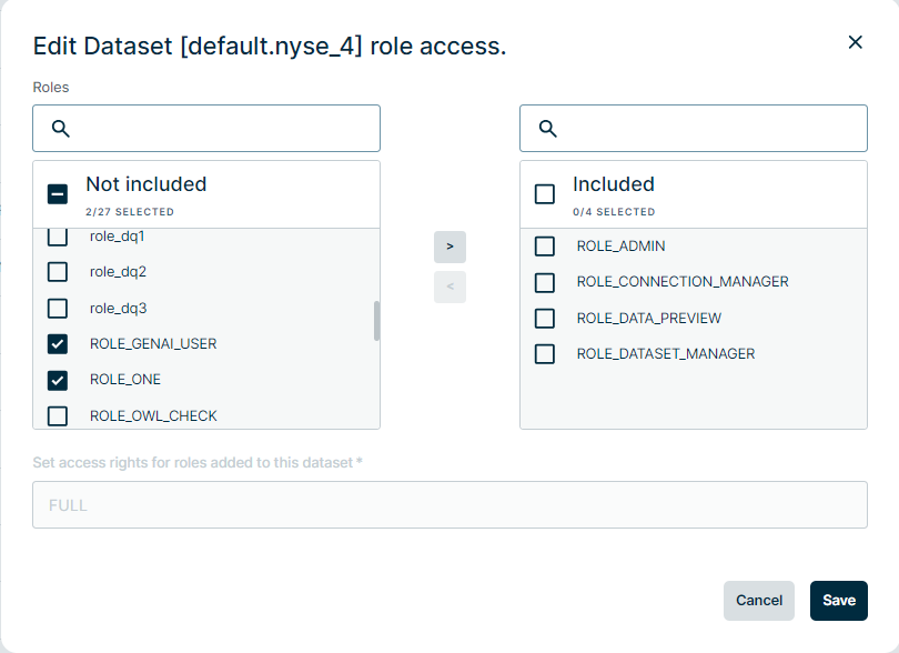 You can manage the roles assigned to datasets on the Dataset Management page.