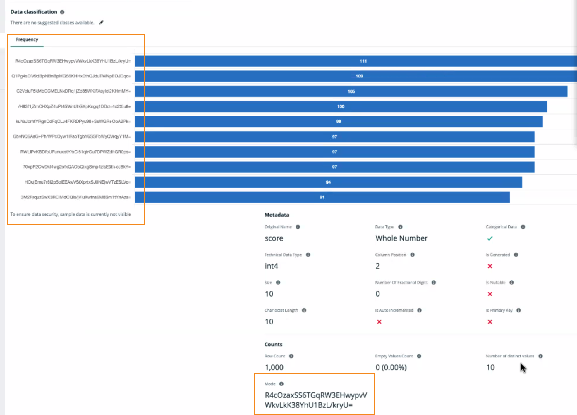 In this case, we anonymize data distribution charts, Mode attributes, and Percentiles.