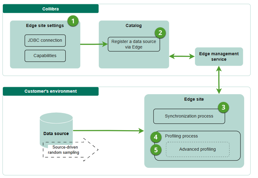 Edge profiles the data on the Edge or Collibra Cloud site itself and only sends the profiling results to Collibra Platform.