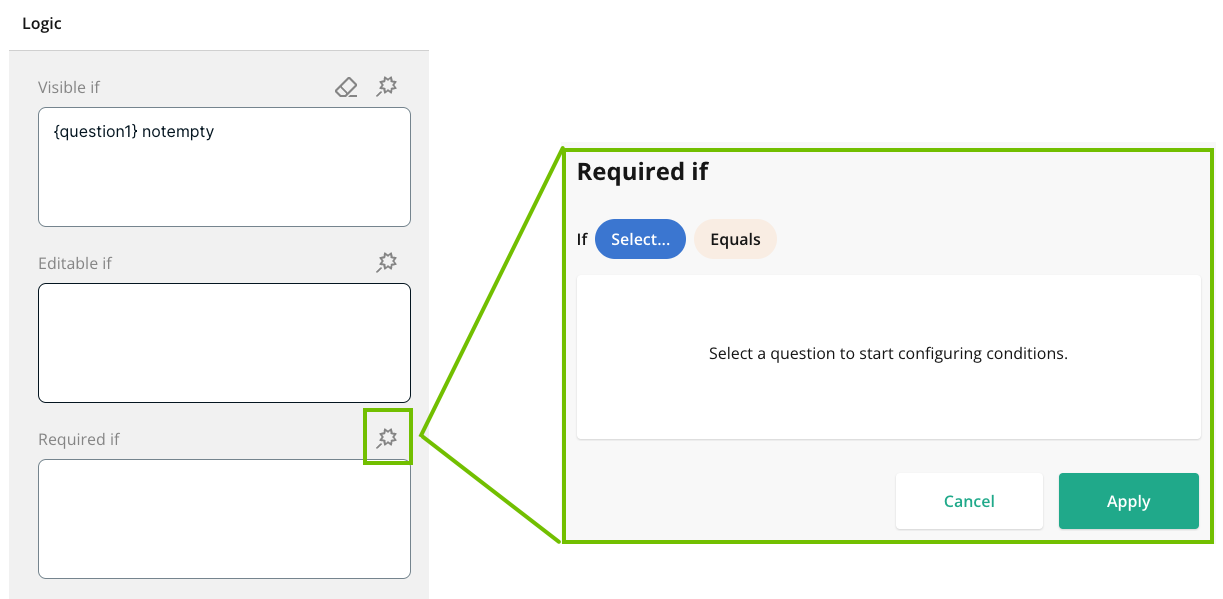 Note This logic condition overrides the Is required? setting in the General section in Properties. |