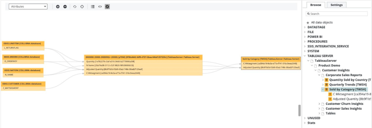 When you ingest Tableau metadata in Data Catalog, a technical lineage for Tableau Data Attribute assets is automatically created.