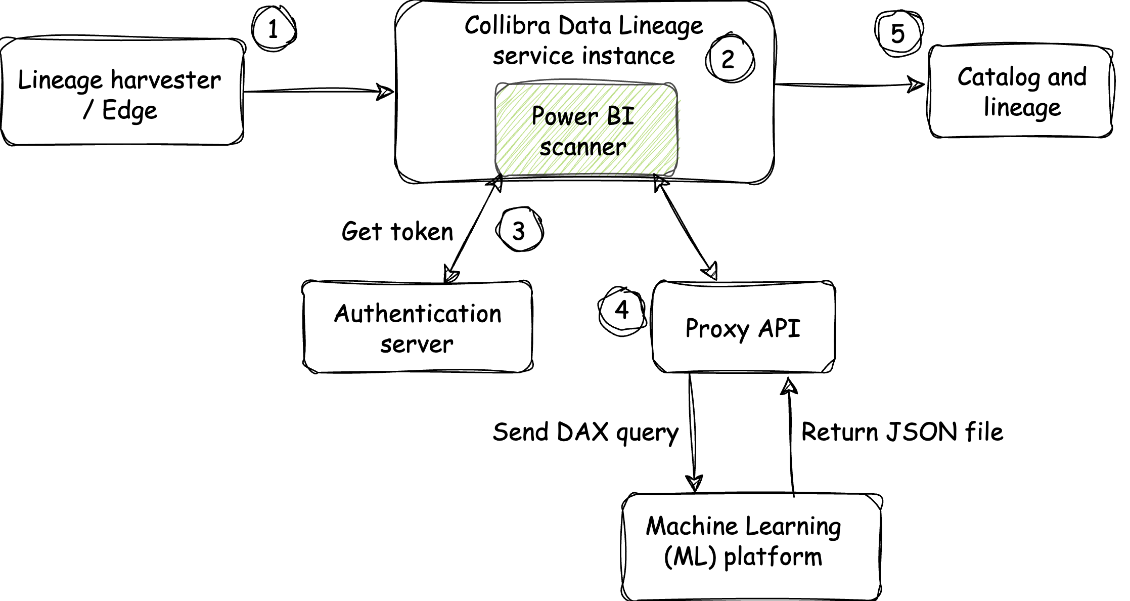 - The DAX queries are sent to the Machine Learning (ML) platform, where they are analyzed. The output is a list of tables and columns for which lineage relations are created in Data Catalog.Note The ML platform has no context about the DAX queries; it only analyzes the DAX queries and sends them to the Power BI scanner, via the proxy API, in a JSON file.