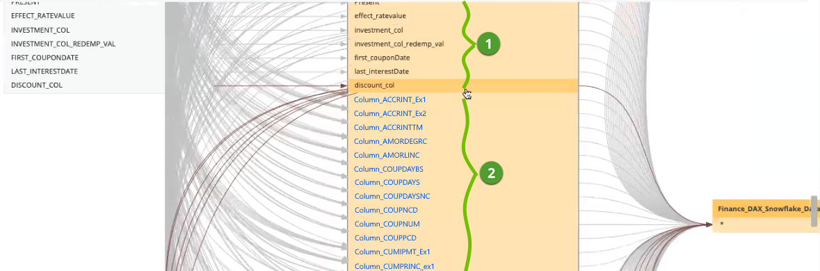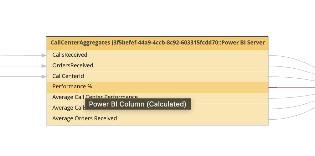 Prior to DAX analysis via Collibra AI, column-level lineage showed only the calculated column and how it related to upstream and downstream data sources. It was not possible to know which columns are aggregated to derive the calculated column. Now, much more information is now shown.
