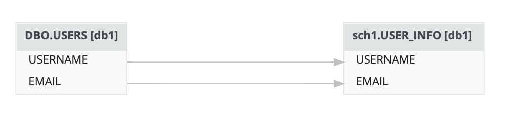 The technical lineage graph shows relations between columns in the graph. Collibra Data Lineage creates and shows the following relation type between stitched assets and other data objects: