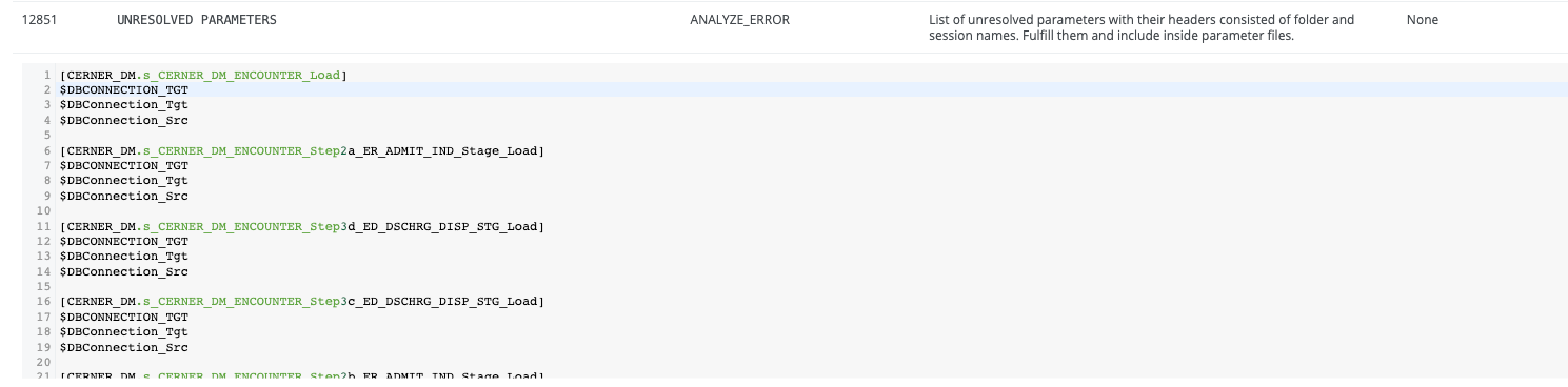 This error occurs when parameters are missing from the parameter files in the external folder. To resolve this issue: