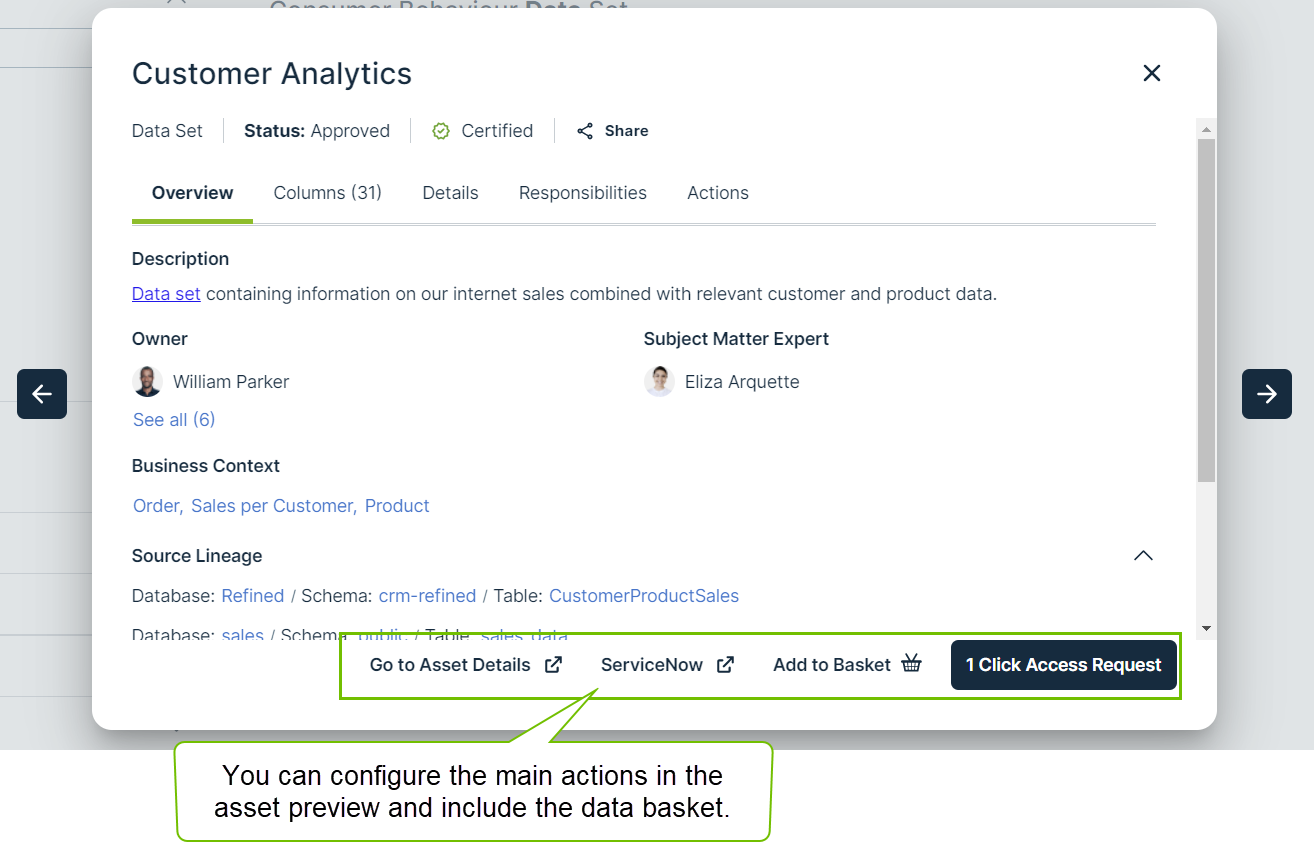 By default, an asset can be shared with a colleague and can be opened in Collibra from the asset preview. |