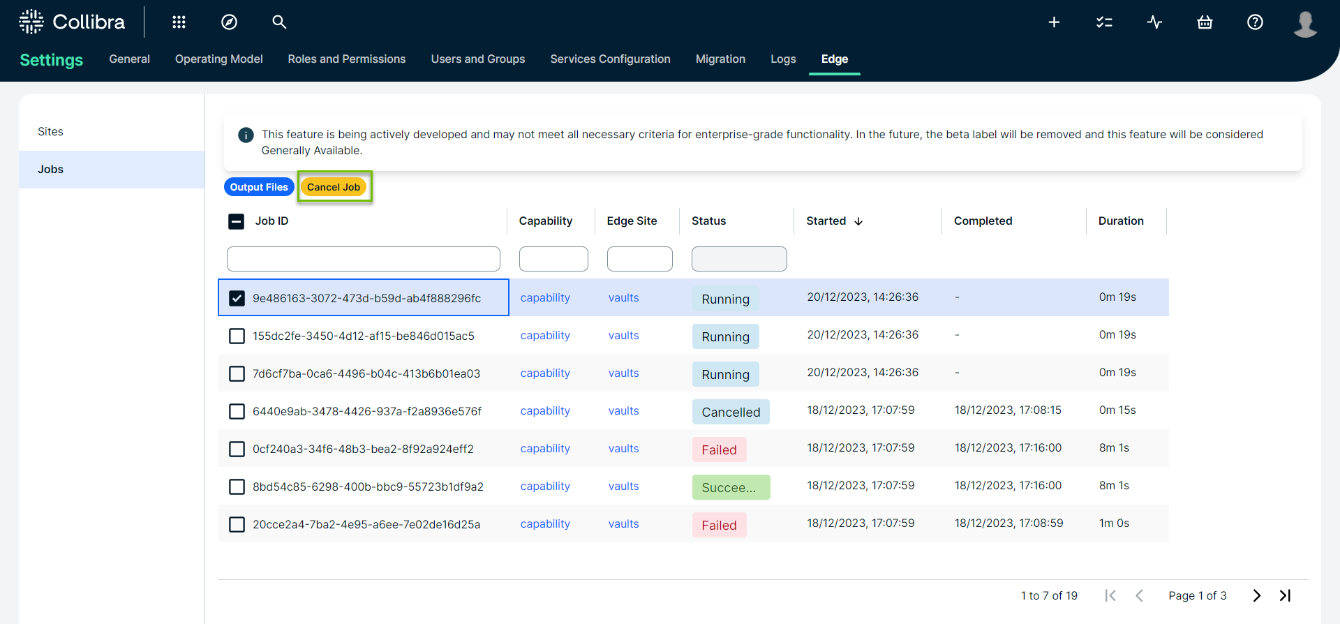 You can cancel an Edge or Collibra Cloud site job which is either running or queued to run.