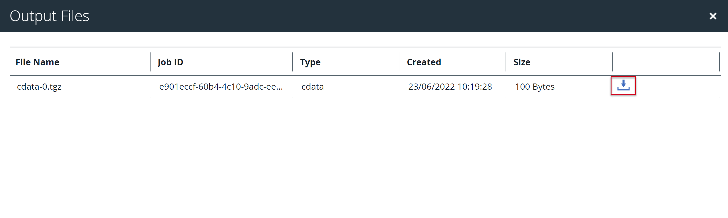 5. Click to download the job output file.
