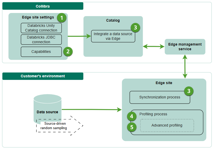 Edge profiles the data on the Edge or Collibra Cloud site itself and only sends the profiling results to Collibra Platform.