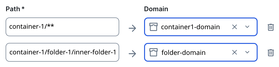 Important The following mappings are invalid because they intersect; specifically, "inner-folder-1" matches both mappings. Ensure that you don't configure intersecting mappings, as the results can vary depending on the order of processing.