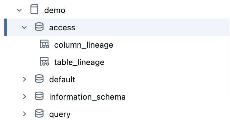 queryschema in thedemocatalog, create ahistoryview based on thesystem.query.historytable. - Grant the SELECT privilege on the following views created in steps 4 and 5: