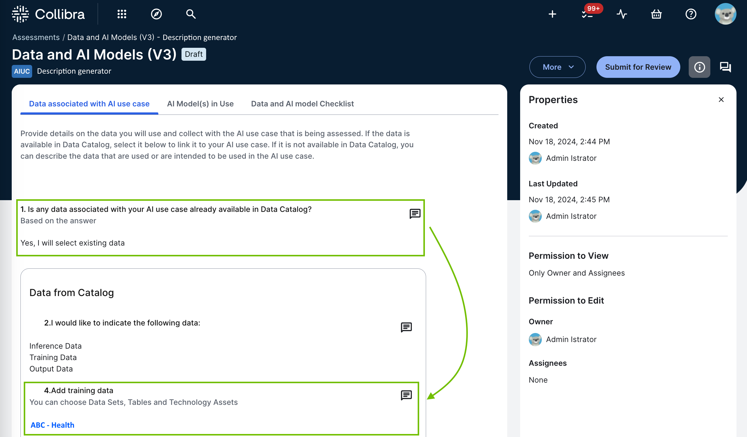 - Changes to the list of Data Category assets that are shown in the Privacy Context widget on the AI Use Case asset page.