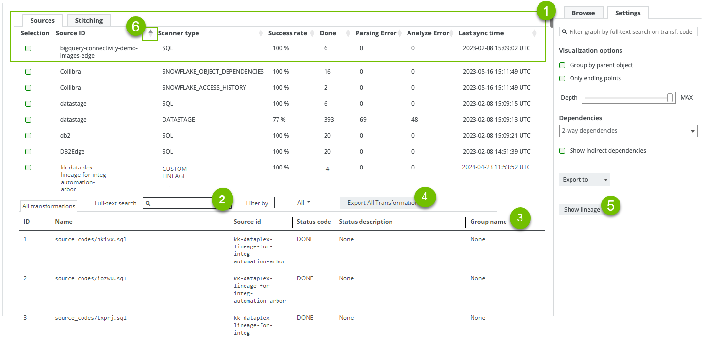 Note For some data sources, a transformation might show the status as DONE even if the Status description reports an analysis error. When part of a SQL statement or procedure cannot be analyzed, the lineage for that specific column or table might fail. However, the rest of the query is still analyzed, and lineage is created.
