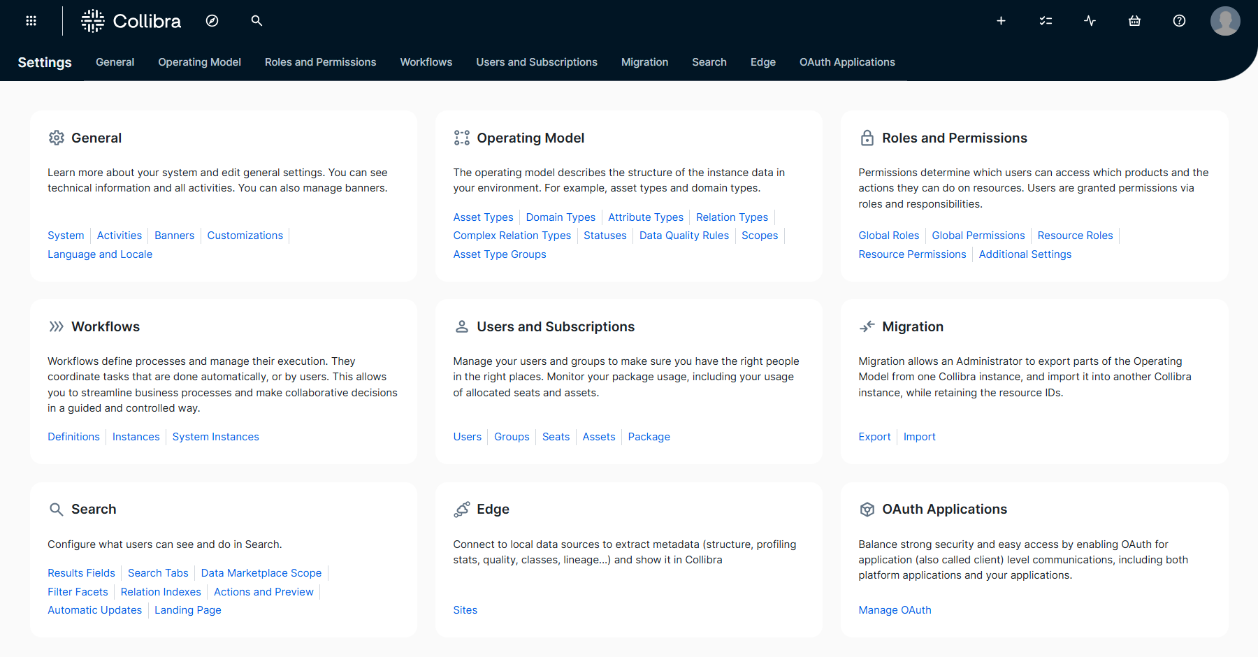 Manage Edge, including Edge or Collibra Cloud sites, their capabilities, and connections. |