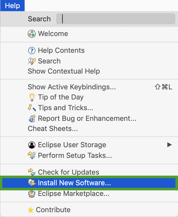 1. In the menu bar, click HelpInstall New Software....