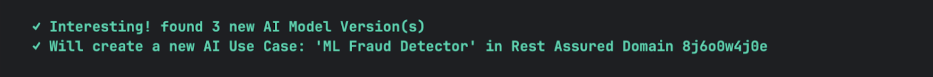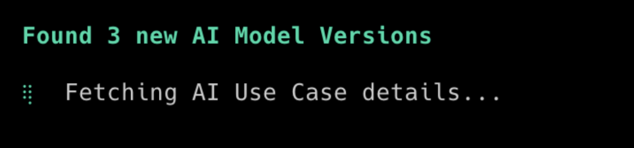 - Or, if new AI model versions are detected, the CLI attempts to retrieve linked AI use case information from the manifest.
