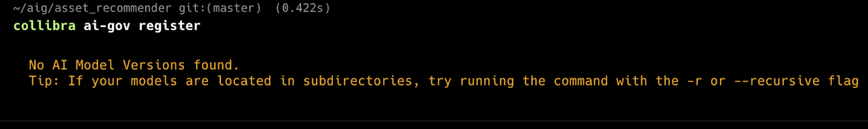 collibra ai-gov register -rorcollibra ai-gov register --recursive. - To include previously rejected models in the scan results, run