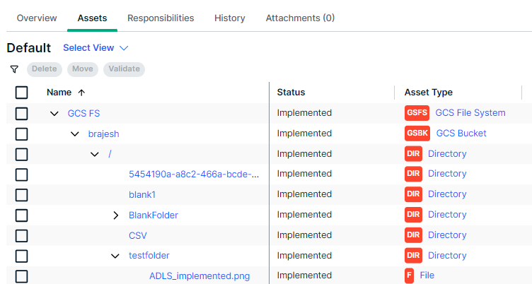 By default, the assets are shown in a plain list. However, you can enable a multi-path hierarchy to show it in a tree structure. The resulting assets depend on whether you use Google Dataplex.