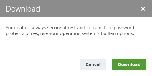 The Download button generates a unique link that is valid for 60 seconds.