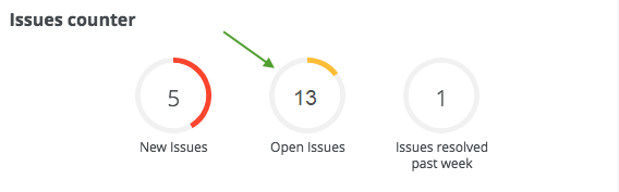 The following image shows the resulting Counters widget and, specifically, the Open Issues counter: