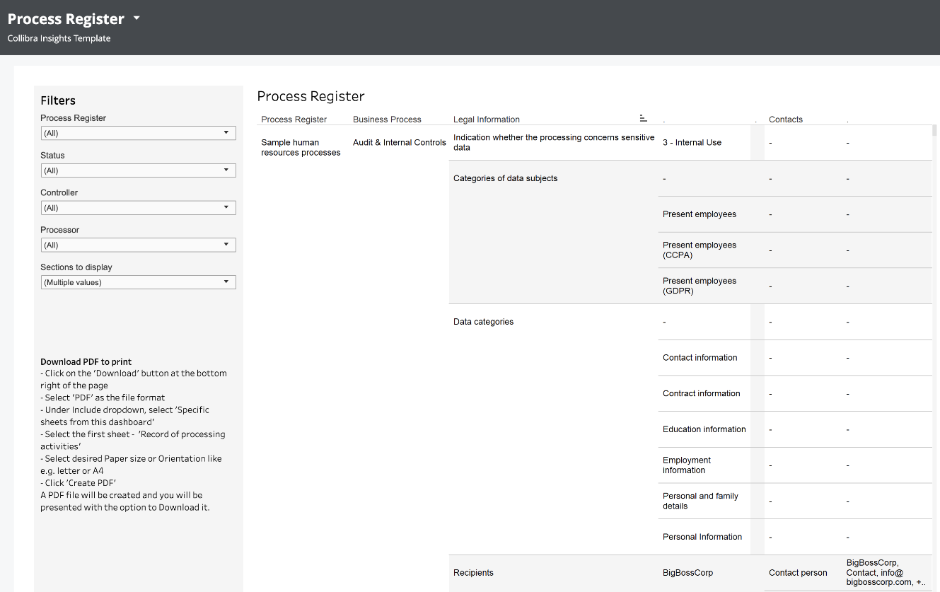 The Process Register report shows the important information of every Business Process asset of every Process Register domain in your Collibra environment. You can download the report as a printable PDF.