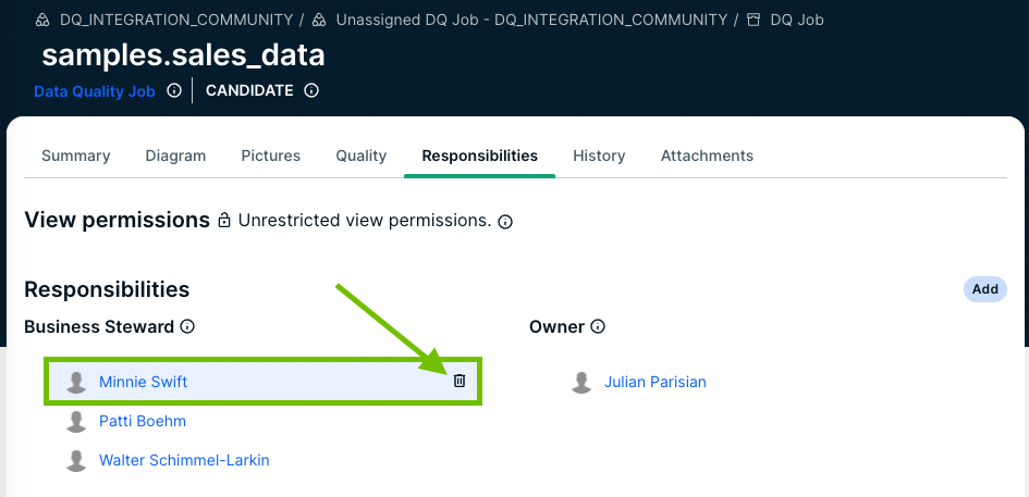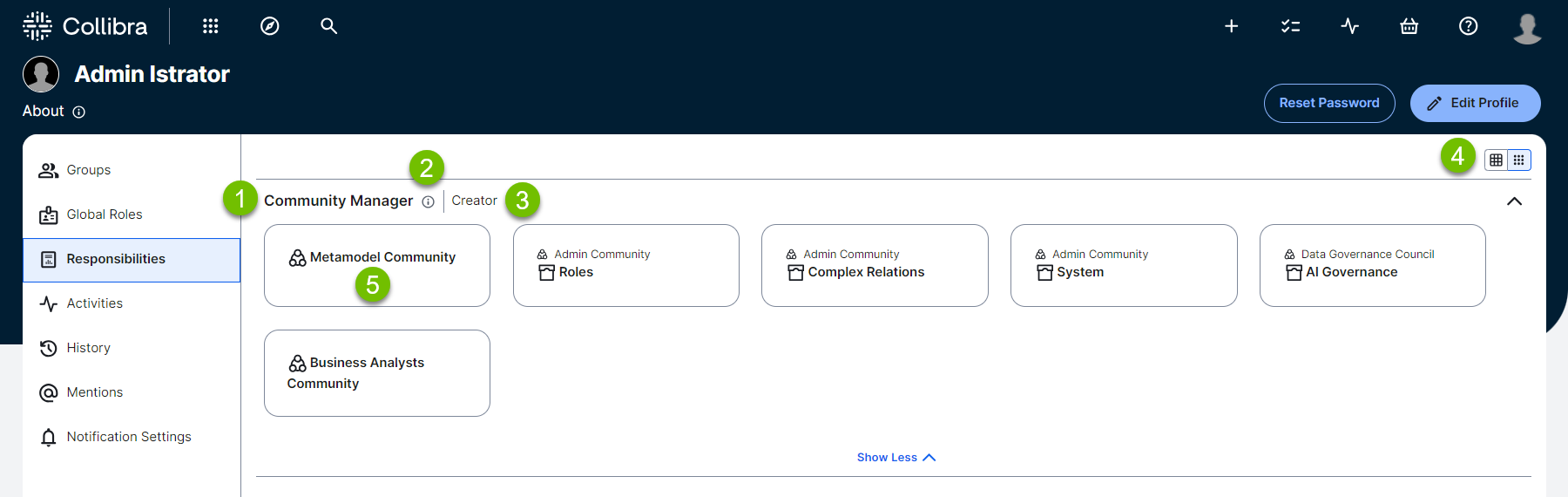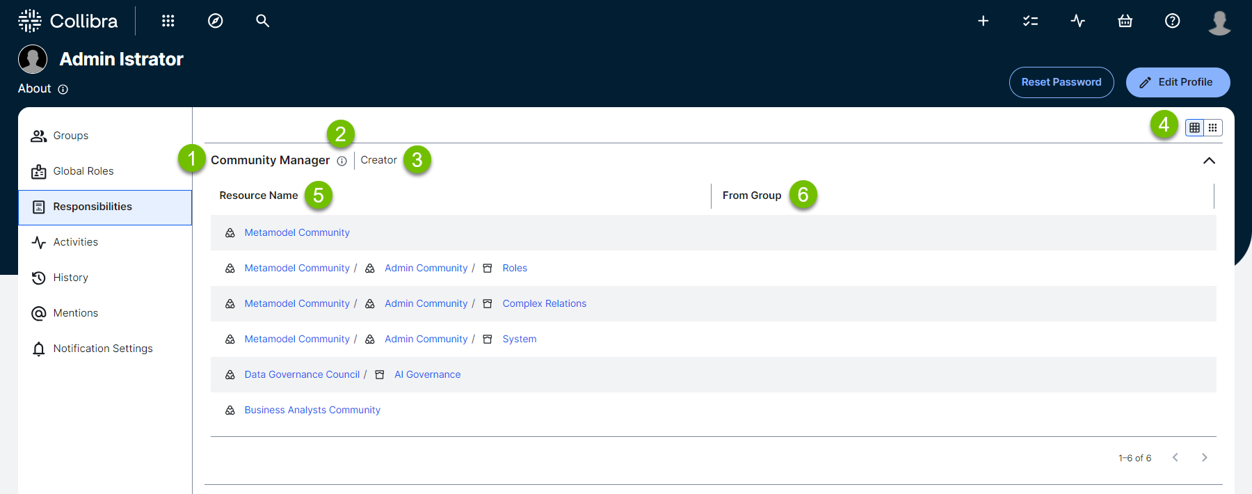 Note Depending on the settings in Collibra Console, inherited responsibilities may also be shown. You can't edit these inherited responsibilities.